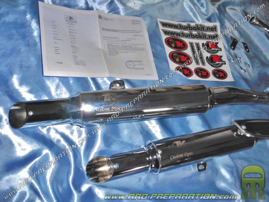 A lover loves HARLEY CUSTOM often on an original 125cc as JINLUN 125 as the HIGHLANDER or MTR HOUSTON, VOLCANO ... 4T BI TWIN CYLINDER amateur'll often miss a nice noise and CUSTOM performance. with this exhaust named CUSTOM at TK / TURBO KIT, you'll be able to ride the ups engines of 250cc to increase your performance and cylinders, and give a helping peroformances a motorcycle as the couple that acceleration and focusing speed, but also win over the noise to offer a racing sound, more serious, more backfiring like all good CUSTOM worthy of the name! this exhaust is adapted to these bikes but only if they have been modified with the high engine (cylinder / piston / cylinder head) 250cc! the exhaust passage provides a great look and a slight weight gain! This line fits the 125cc motorcycle type CUSTOM in JINLUN like HIGHLANDER but also MTR HOUSTON VOLCANO ... and 4T but obviously changed with the top engine of 250cc.