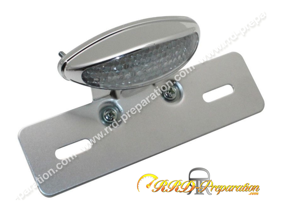 Universal clear and chrome oval rear light with position and brake light and license plate light.