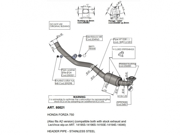 Aquí está el colector de carreras LEOVINCE de repuesto para silenciador LEOVINCE u ORIGIN en maxi scooter HONDA FORZA 750 a partir de 2021.