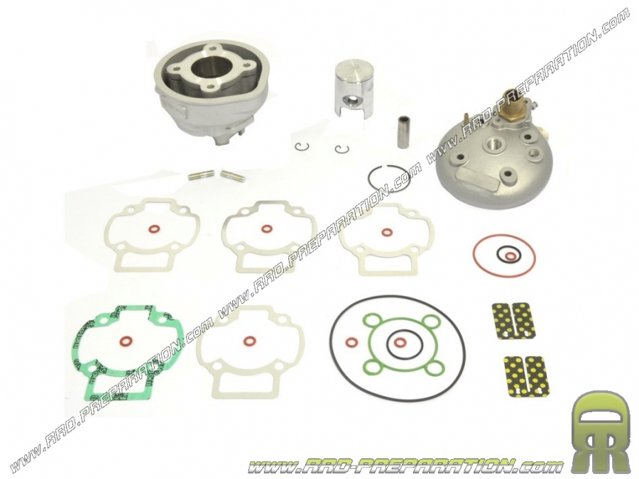 Kit ATHENA de 50cc para motor PIAGGIO / GILERA con refrigeración líquida. Este motor alto es de excelente calidad, el cilindro es de aluminio tratado con nicasil (fundición EUROCILINDRO de muy alta calidad). Los diagramas no son excesivos pero apuntan a la potencia como siempre con ATHENA . El pistón es un monosegmento para reducir la fricción y permitir mayores revoluciones. Viene con una culata de alta compresión que ofrece una relación de 16:1. Nuestro objetivo es un aplastamiento de 0,80 mm. ¡También viene con un juego de láminas de válvula de carbono adaptadas a las velocidades obtenidas por este kit!
