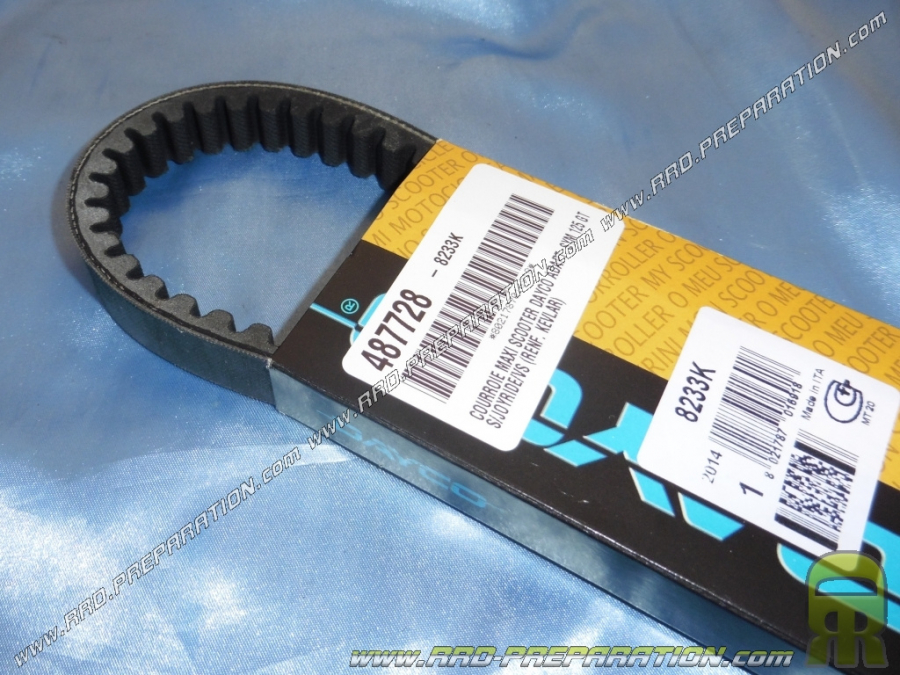 Voici la courroie DAYCO RACING pour maxi scooter 125cc SYM GTS, JOYRIDE, VS... . Tout comme la MALOSSI par exemple, elle reprend la taille d’origine.