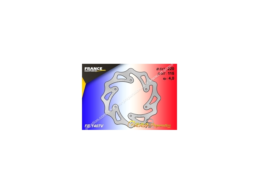 Disque de frein FRANCE EQUIPEMENT hautes performances! Cette version WAVE / VAG est plus légère, elle évacue mieux les poussières et le refroidissement est aussi bien amélioré! Idéal pour donner du style a sa moto, mais aussi pour offrir plus de performances de freinage, réduire le poids... Ce disque se monte sur bon nombre de moto HRD ou YAMAHA (voir liste en bas). De très haute qualité, fabriqué en France dans les meilleurs matériaux pour un maximum de durée de vie même avec des plaquettes racing a fort coefficient de friction!