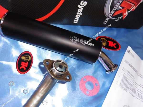 Ce pot d'échappement dispose d'un corps vide, de volumes et de formes étudiées pour de meilleures performances, le corps est fabriqué en tôle d'acier soudées puis vernis! La tôle est moyennement épaisse de manière a offrir de bonne résonance mais aussi une bonne solidité dans le temps et un bruit correcte! Le silencieux est un modèle simple en aluminium mat! L'échappement est livré complet avec le nécessaire de fixation. En général le gain est d'environ 10km/h a 15km/h, l'idéal est de l'accompagner de galets allégés. Sachez que TK alias TURBO KIT S.L est un fabriquant espagnol de pot d'échappement depuis 1966.
