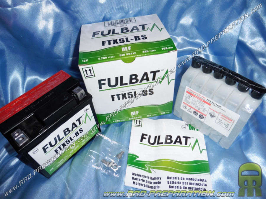 Here is the battery FULBAT YTX5L-BS . This battery of very good quality is mainly used on the original machines. Standard it offers 12v for 4 amps.