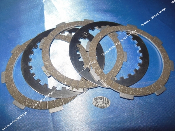 The clutch SURFLEX is renowned in competition and in the world of large cube motorcycle. This clutch kit for HONDA NSR 50cc, MB, MT, MTX, NS ... offer a very good traction with a special blend for the friction plates, specially designed for clutches immersed in an oil bath! The steel plates are relatively mundane models. This clutch resist very well to a stock engine.