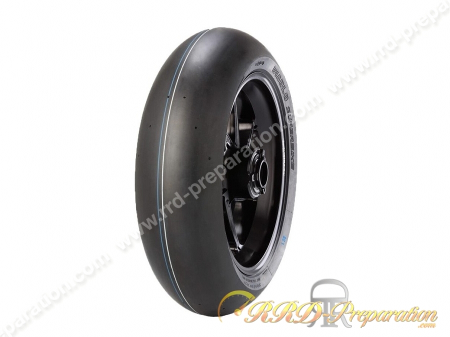 Here is the front slick tire from the PIRELLI brand, it is a DIABLO SUPERBIKE SC1 model.