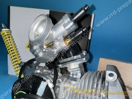 RRD PERFORMANCES 80cc engine (78cc real) for MOTOBECANE, MBK machines with AV7 engine. For users wishing to preserve the admission to the cylinder and the AV7 architecture without switching to the AV10. Engine with an excellent stroke with its bore / stroke of 47 X 44.9mm (not far from the square), the long stroke crankshaft brings a net gain in torque especially on the AV7 engine without valves, where the piston plays the roll of opening / closing admission. This engine is built to take high power and speeds of 10,000 / 11,700 RPM. It comes preset with a sharp lowering of the carburettor jets PHBG, necessary on engines without reeds.