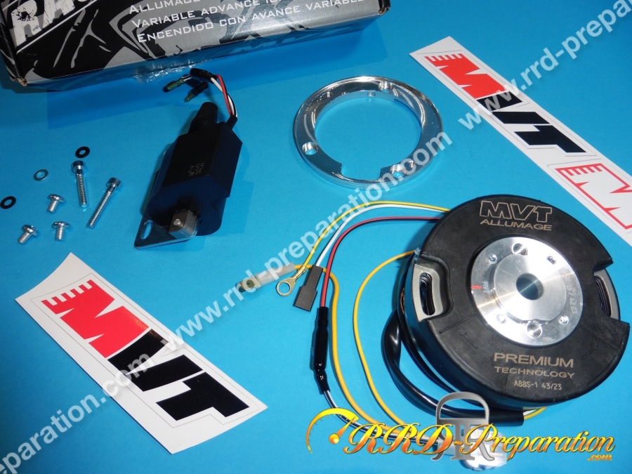 It consists of an extra light internal rotor and a 100% waterproof full stator, it is truly manufactured in the rules of the art and in France. You can boost it with a digimax. Some compare this ignition to the famous celetra MHR is to say how powerful this ignition is. To approve the bridle therefore, simply connect the blue wire, for competition or countries without legislation, do not connect it. We appreciate its very simple timing for an original race, 0mm before pmh so top dead center.