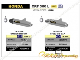 ARROW THUNDER exhaust silencer with carbon or steel tip delivered, with a RACING look, ideal for increasing your performance! Specially designed to be mounted on your Honda CRF 250 L, RALLY from 2017/2018 and 300 L from 2021/2022.