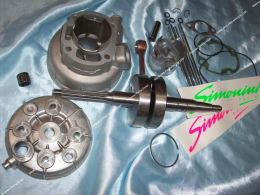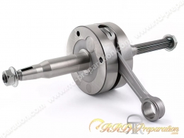 Crankshaft for scooter MINARELLI horizontal air or liquid engine. Special long stroke 44mm (against 39.20mm for the origin), rod length 85mm (against 80mm for the origin) and axis of diameter 12mm (against 10mm for the origin), it can only be installed with a kit provided for this purpose like the SIMONINI racing booster Ø47.6mm special long race.