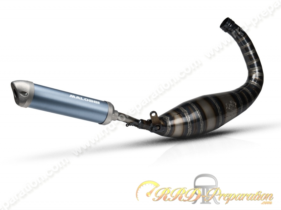 All MHR SUPERMOTO 100 exhaust jars are made from steel sheet with a precise and constant thickness of 0.8 mm, laser cut, assembled with meticulous precision by robotic welding TIG and MIG, as well as by manual oxyacetylene welding, then hand hammered for optimal finish. They are also equipped with a calibrated nozzle, designed according to strict tolerances, to ensure pressure inside the pot within the correct limits. Each pot is painted and equipped with a black anodized aluminum silencer, decorated with the Malossi logo.
