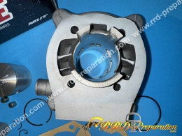 Straight from the experience of MVT and AGP (Alain Godou Production) in competition, here is the G2B high engine from MVT . This high engine has a stud center distance of 43X50mm like the original MBK 51 cylinders but it is designed for a 39.7mm stroke with an 85mm connecting rod, so it must be installed on special crankcases like the MVT G2B! It is therefore to be installed in combination with a 39.7mm stroke crankshaft and 85mm connecting rod like the BIDALOT of the period or the MVT of today (reference VI41). This kit has a huge booster exhaust, a one-piece cylinder head with a polished finish frustoconical combustion chamber. A DEC of 2mm is applied for a good hold and a good firewall of the O-ring. Of 6 intake lights. The architecture of the very massive cylinder leaves room for the work of a preparer, the fixing of an exhaust 2 screws, 3 screws... We can model the whole as we wish. This competition set has very large diagrams and a very high compression ratio, it must be accompanied by an engine configuration which follows, exhaust, ignition, large carburetion, variation being capable of exploiting the 12,500 / 15 500 rpm power...