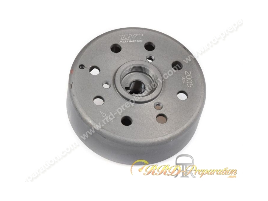 Replacement MVT rotor for MVT MILLENIUM ignition systems on MINARELLI horizontal and vertical engine scooters. This replacement rotor is admittedly expensive but of extremely high quality! Furthermore, it can save the entire ignition system in case of failure! It is compatible with MVT external rotor ignitions EXT107 / EXT114 / EXT120