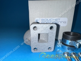 Competition intake pipe C. BOUCHET printed in 3D in a specific material resistant very well to heat! This pipe allows the installation of carburetors POLINI CP 15 to 21mm or DELLORTO PHBG 15 to 21mm. The pipe, designed by a motorist, is obviously designed for maximum performance. It comes with a flexible oil resistant anti-vibration sleeve, its two collars and its screws! A beautiful piece, indispensable for the big engine configurations of MBK CRAZY BIKE! An advantage of flexible mounting and 3D printing is the thermal cut-off between the carburettor and the engine to heat the gas mixture in the carburettor. Ideal on CRAZYBIKE since this machine only has little way to change performance level (specific pitch, fixed motor without dimmer...).