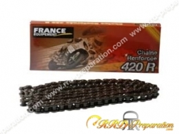 Hyper-reinforced complete chain kit FRANCE EQUIPEMENT of original size with a step of 420, crown with number of teeth of choice (30 to 52), gable from 9 to 17 teeth of choice. Ideal to get back on your bike YAMAHA DT 50 MX from 1981 to 1985.