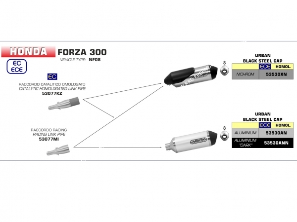 Exhaust silencer plus catalyzed connection or not ARROW for maxi scooter Honda FORZA 300 2018.