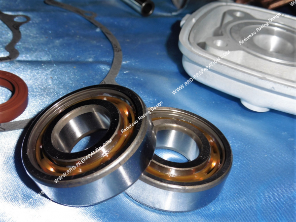 A complete pack with reinforced 44mm long stroke crankshaft, bearing pack, key, aluminum cylinder 5 transfers with large bar exhaust and integrated base wedge, cap in the brand's color... ideal for preparing a high-performance engine.