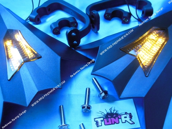 Here is a pair of hand protects Wings at TUN 'R, style bat / Batman, they have a unique look and unusual with integrated turn ... They are designed for all types of aluminum and steel handlebars. Supplied complete ready to mount, they are of good quality. Ideal for those wishing to give an unusual look and differentiate themselves from others!