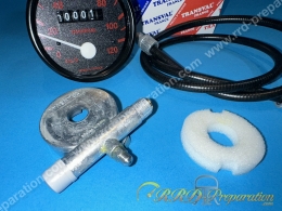 Round counter complete with cable and trainer 120 km / h TRANSVAL for moped, mob Peugeot 103 SP, SPX, RCX ... 17 inches