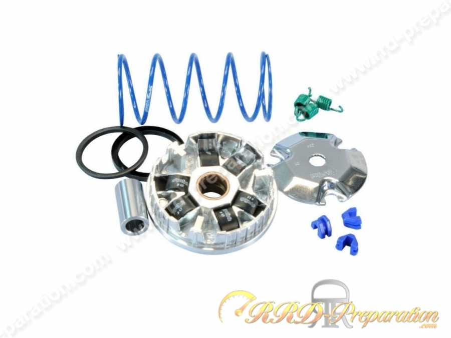 Aside from this, this pack comes with a clutch spring set so that the clutch takes later, this therefore greatly increases the acceleration. The delivered variator is a model racing with 6 rollers, it is reviewed and corrected both in the tread and in the angle of range, has a coppered ring to avoid seizures the alloy is of very good quality. This fully assembled package will bring you a lot of acceleration, recovery and a slight gain in peak speed with exemplary reliability, all for a small budget. Ideal with a configuration of the type pot / carburetor and even kit!
