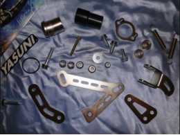 El kit de fijación para los escapes de paso bajo DOPPLER GP8.0 en una motocicleta de 50 cc con motor DERBI .