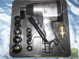 Ideal para apretar o desbloquear con eficacia tuercas demasiado apretadas, una llave de impacto de buena gama con sus accesorios y maletín de transporte.