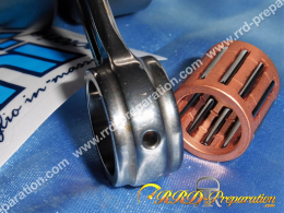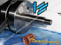 Cigüeñal de muy alta gama, equilibrado dinámicamente con el pistón POLINI de Ø52 mm del kit de 100 cc y el equilibrador original MINARELLI AM6. Biela mecanizada en masa, materiales de muy alta gama, precio también muy elevado... para rodamientos de seda de Ø17mm. Se entrega con una jaula de agujas para bulón Ø 13 mm.