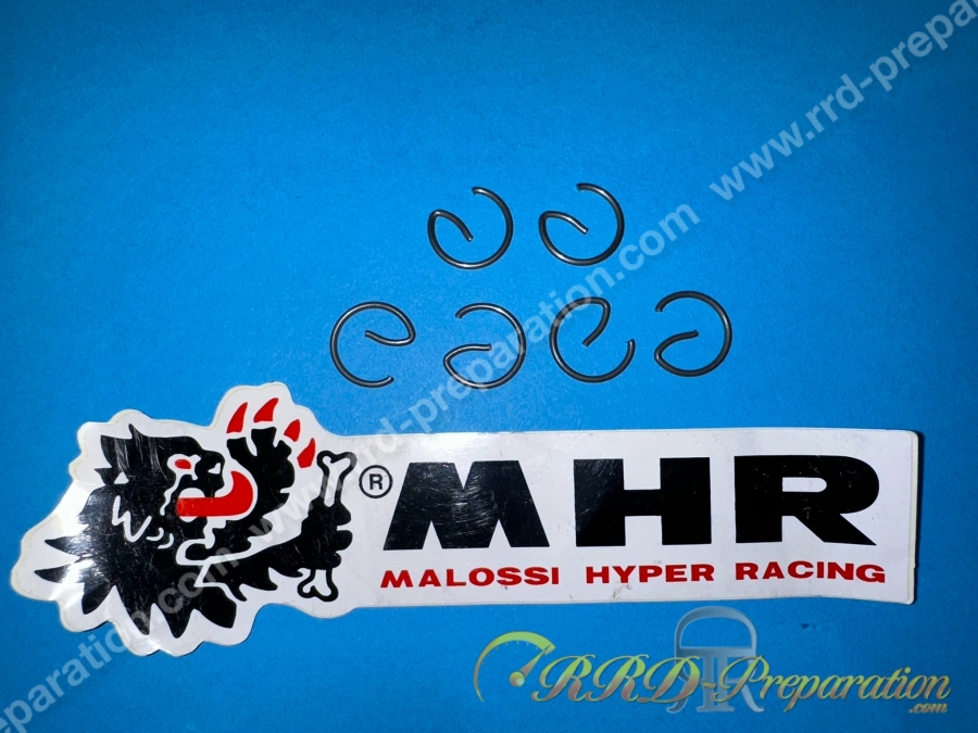 Clips de pistón vendidos individualmente (¡¡el precio se refiere a un solo clip!!!). Modelo de muy alta calidad en acero especial, extra reforzado, para sujetar ejes de Ø13mm. Clips en forma de G, material de Ø1,2 mm de espesor. Para todos los kits de 50 y 70cc, se puede montar incluso en los motores originales MBK 51 / motobecane av10 o incluso av7.