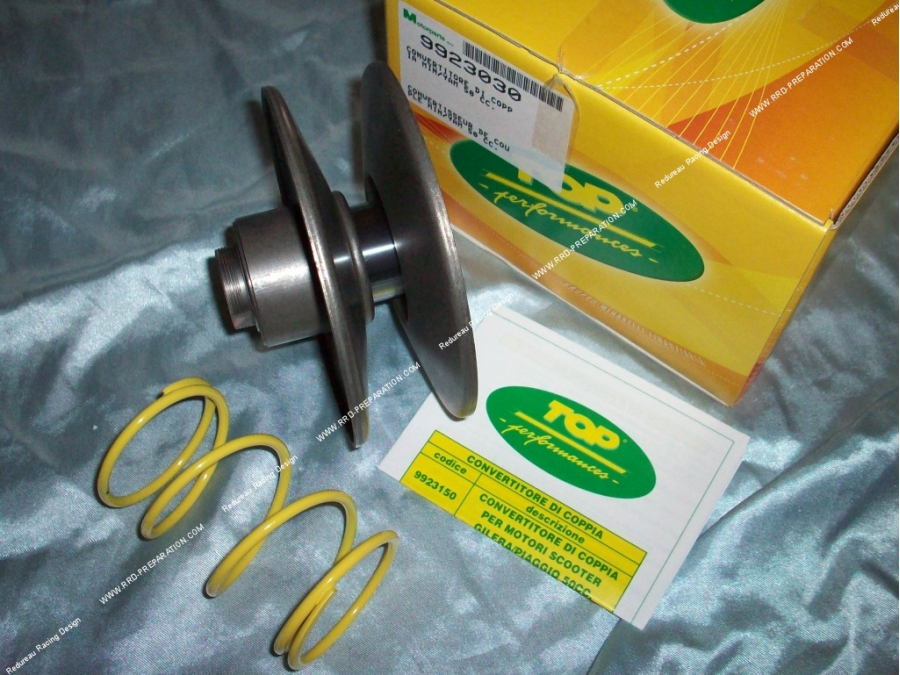 Un completo corrector de par TOP PERFORMANCES para motores de scooter verticales y horizontales MINARELLI & YAMAHA . Este modelo mejorado está diseñado para escalar mejor a lo largo de la playa con peso pluma, independientemente de la velocidad del motor. Las mejillas están estudiadas, tratadas antidesgaste… . Un excelente modelo que podrás posar con una correa de tamaño original. Viene completo con un resorte de empuje amarillo, más duro que el original.