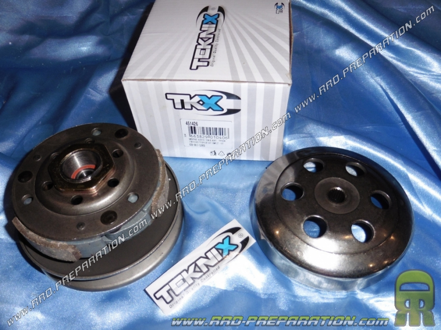 Reforzado, de calidad, este embrague completo será ideal para tu motor original o ligeramente empujado. ¡Un embrague de 2 mordazas con forro reforzado/adherente, una carcasa de embrague sólida, rígida y ventilada para un agarre aún mayor con un corrector de par asociado! Se monta en motoneta piaggio, typhoon,...