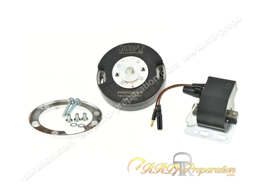 Un encendido soberbio para muchos el mejor de su categoría (ligero con iluminación), aceleración, solidez, velocidad máxima, bajo consumo, iluminación potente, homologación, fabricación francesa, avance de encendido variable que te dará mucho más par que las dietas altas, es todo allí. Tiene uno de los poderes de chispa más altos del mercado. Consiste en un rotor interno extra ligero y un estator sólido, realmente se fabrica de acuerdo con las reglas del arte y en Francia. Puedes potenciarlo con una eprom (digimax). Hay quien compara este encendido con el famoso selettra MHR, es decir lo potente que es este encendido. Para homologarlo, por lo tanto, fíjelo, bastará con conectar el cable azul, para competencia o países sin legislación, no lo conecte. Producto esencial en configuraciones de carreras grandes y la ganancia de rendimiento es enorme.