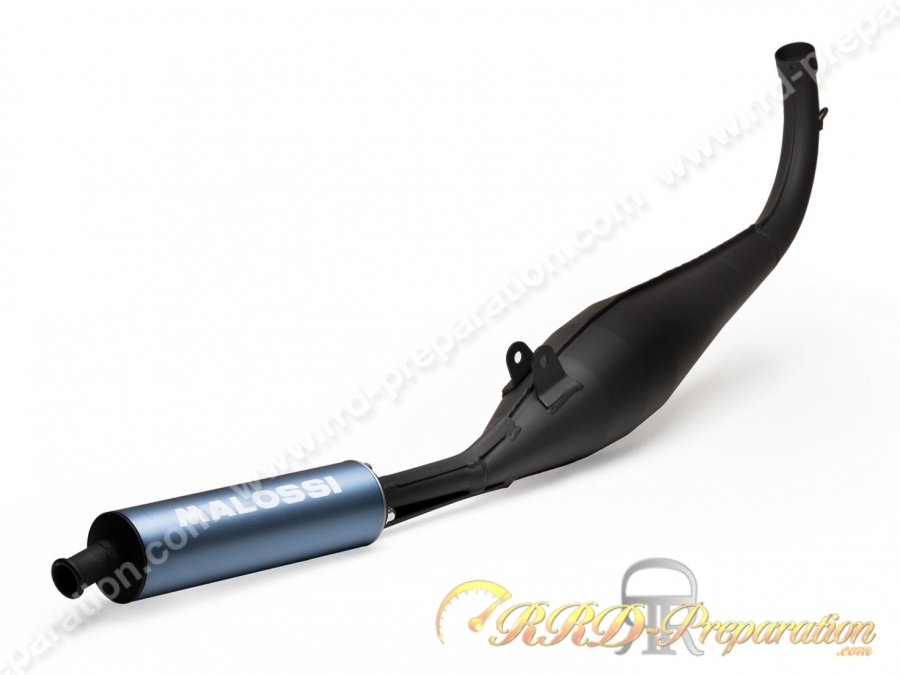Se podría decir que es el mismo escape que el BLACK GUN, pero tiene marcado MALOSSI y está pintado en negro mate... Este escape es relativamente clásico, es un buen escape deportivo que competirá con el DOPPLER STREET CUP. ¡Es un modelo que ha demostrado su eficacia durante más de 20 años antes de presentarse en MALOSSI ! La carrocería es en semicárcel tipo jaula estampada y soldada, los volúmenes están ajustados a diagramas medios, es una olla que funciona muy bien en 50cc y 70cc, en un motor original quedará hueco a bajas revoluciones.