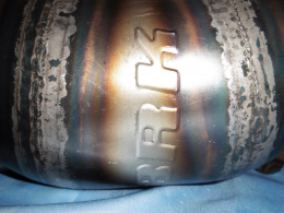 En fina jaula soldada laminada, su resonancia es excelente. En cuanto al acabado, es suave y limpio. Las soldaduras son planas y de buena calidad. Acabado sin barnizar con placa de aluminio cortada con láser y grabada BRK, no lleva brida en la entrada, ni en el interior ni en la salida. Es un escape destinado exclusivamente a la competición en circuito, carrera... .
