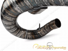 El escape de Derbi Stage6 fue fabricado a mano en Italia siguiendo la técnica tradicional de chapa de acero fina "rollada y soldada". Estar destinado a un uso típico de la competencia, no está barnizado. Por lo tanto, le recomendamos a él aplicar regularmente un spray de grasa para evitar la corrosión demasiado rápida. Se termina con un cartucho CNC Stage6 R/T.