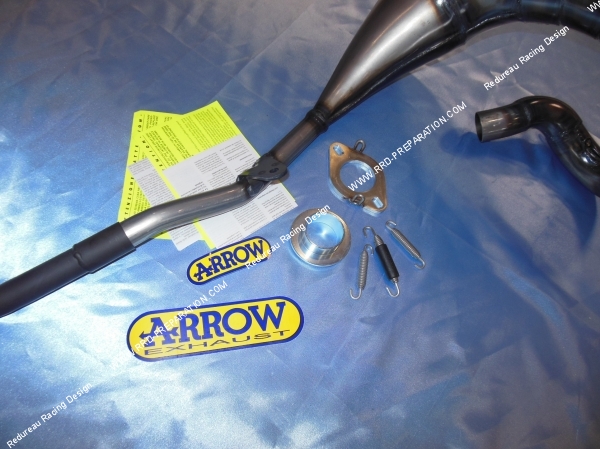 Aquí está el escape ARROW Racing para las motocicletas HONDA CRM de 125cc de 1989 a 1998. Con su silenciador de aluminio y su cuerpo en fina jaula laminada soldada, este escape ofrecerá una resonancia extraordinaria y una ganancia de rendimiento considerable en comparación con el dispositivo de origen.