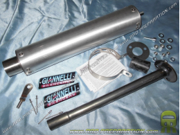 Aquí está el escape GIANNELI homologado para motos 125cc DERBI GPR RACING y NUDE o GILERA SC de 2004 a 2012 2 tiempos paso bajo el sillín. Con su silenciador homologado de aluminio o fibra de carbono y su cuerpo de clink fino laminado soldado, este escape ofrecerá muy buena resonancia y un considerable ahorro de peso respecto al original. De hecho, su peso total alcanza los 3 kg frente a los 6 kg del origen.