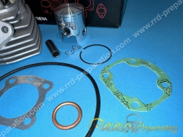 El ATHENA racing de 70 cc es un fabuloso kit de aluminio tratado con nikasyl con un diámetro de 46 mm. El pistón es de monosegmento de 1,5 mm y el sombrerete está abombado en más de 40 mm de diámetro para poder mantener la culata original con un buen rendimiento, la junta de la culata es de aluminio duro fino de 0,60 mm.