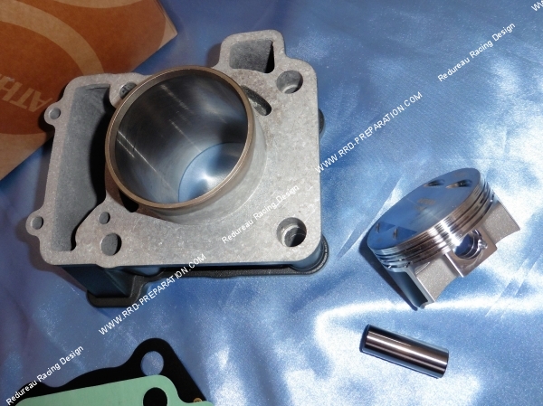 Este kit consta de un cilindro BIG BORE de aluminio tratado con nicasil, cuya refrigeración está mejorada, el diámetro aumenta a 65 mm (frente a los 58 mm del origen) para pasar a una cilindrada de 160 cc (cilindrada real de 156,6 cc con la carrera original de 47,2 mm) frente a la original de 125 cc (124,7 cc reales).