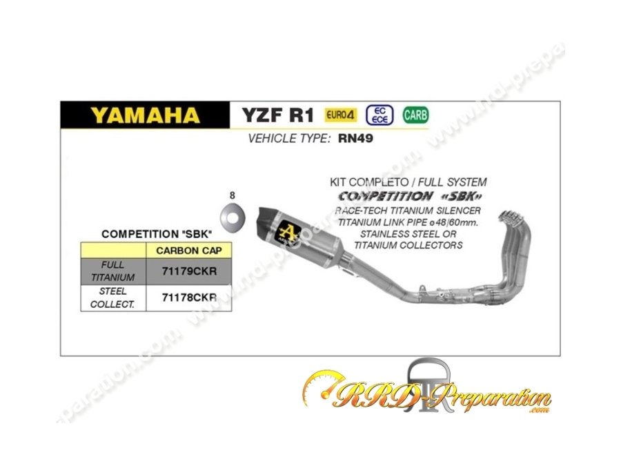 Aquí está el sistema de escape completo ARROW COMPETITION "SBK" para YAMAHA YZF R1 de 2017 a 2022, diseñado específicamente para mejorar el rendimiento de las motocicletas de carreras y ofrecer una experiencia de conducción óptima en la pista.