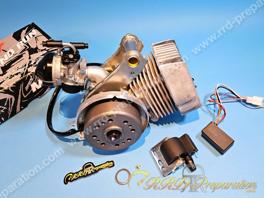 ¡Aquí está el motor completo enfriado por aire que se entrega ensamblado y listo para usar! Este motor deportivo ofrece una buena ganancia de rendimiento, pero aún puede ser más eficiente, puede quitar piezas del paquete y poner otras en su cesta si las quiere instaladas. El motor está compuesto por: