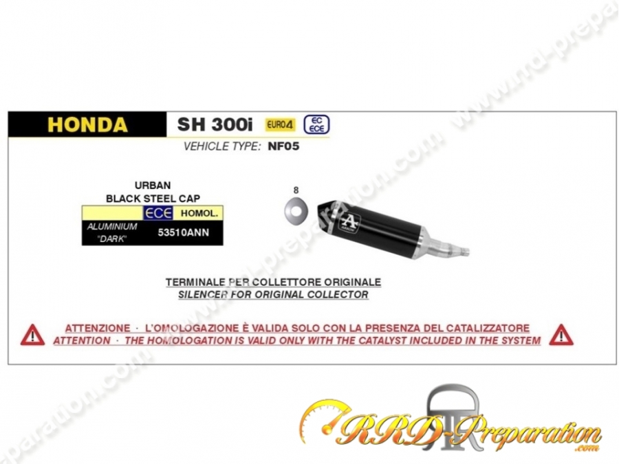 Aquí está el escape ARROW Urban para el maxi-scooter HONDA SH 300I de 2016 a 2020.