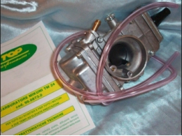 Ici vous trouverez tous les carburateurs seuls pour moto 50 à 125cc! Attention, un carburateur doit être bien choisi lors de son achat! Préférez la qualité aux bas prix dans un premier temps. Ensuite, il faut prendre ces paramètres suivants en compte: 1-Vous faut-il un carburateur RIGIDE ou SOUPLE (selon votre pipe d'admission), le montage souple peut être avec manchon sur pipe rigide, les montages souple évitent les émulsions et facilitent donc les réglages, les hautes performances... 2- Vous faut-il une dépression? (Selon votre robinet si il est a dépression ou on/off, une dépression peut aussi être mise sur la pipe) 3-Vous faut-il la possibilité graissage séparé? (Si vous voulez garder ce dernier, une prise peut être aussi installée sur la pipe) 4-Quelle taille de carburateur vous faut-il? -Origine: 17,5mm maxi -Origine débridé avec pot: 19mm maxi -Petit kit 50cc, pot, allumage...: 21mm maxi -Petit kit 70cc avec petit équipement: 24mm maxi -Kit 50cc très poussé avec gros équipement: 26mm maxi -Grosse configuration 80cc ou plus: 30mm maxi Boisseau plat ou rond? Généralement, les boisseau plat offrent un répondant moteur plus rapide (ils sont plus courts), ils sont aussi bien moins simple a régler sur les basses vitesses, les bas régimes... C'est pourquoi on recommande généralement ces carburateurs pour la compétition uniquement et qu'ils ne sont que très rarement monté sur une machine de route! On les recommande généralement sur des cylindres avec échappement a valve ou échappement a barrette pour des questions physiques. Les boisseau ronds peuvent être eux aussi très très performant! Ils sont aussi généralement bien plus adapté aux bas régimes, a la basse vitesse et plus simples a régler, ils accompagnent mieux les cylindres sans valve a l'échappement, avec échappement a boosters ou rond / ovale. Ils fonctionneront donc très bien poignée au 1/4 ouverte, ce qui en fait des supers carburateurs de route que ne broutent pas a tout va... Ils sont généralement bien moins gourmand que les carburateurs a boisseau plat (surtout ceux de basse qualité).