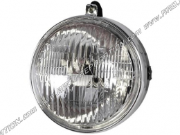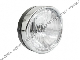 Phare avant (feu) rond noir chrome Ø130mm P2R LUXE CASQUETTE pour cyclomoteur, mob, 103, 51, fox...