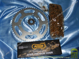 Idéal pour une remise à neuf. Kit chaîne complet AFAM avec couronne et pignon renforcé en acier.