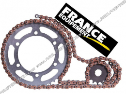 Kit chaine FRANCE EQUIPEMENT renforcé pour moto APRILIA DORSODURO 750 de 2007 à 2016... dentures au choix