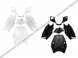 Kit carrosserie TNT contenant 5 carénages légèrement améliorés dans leur design. Ce kit à bas prix dispose d'une très bonne qualité, il contient le couvre guidon, la coque avant, le garde boue avant et les latéraux arrières. Disponible en blanc ou en noir, il se monte sur les PIAGGIO ZIP refroidissement par air uniquement! (la coque avant n'est pas prévue pour avoir un radiateur de refroidissement liquide).