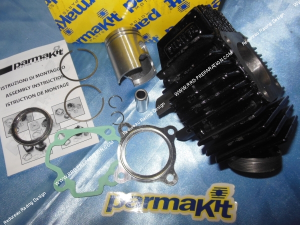 Ce kit dispose d'une architecture améliorée, d'un piston bi-segment avec balayage amélioré, un cylindre en fonte... Livré sans culasse! Il n'est pas nécessaire de travailler les carters ni de poser un vilebrequin renforcé ou une grosse carburation! Un 15 a 19mm suffit largement!