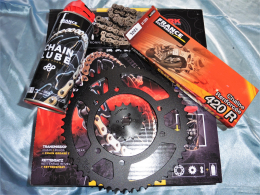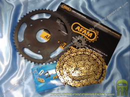 Kit chaine acier de très haute qualité, couronne et pignon avec nombre de dents aux choix, taillés dans les meilleurs aciers et fabriqués en France!