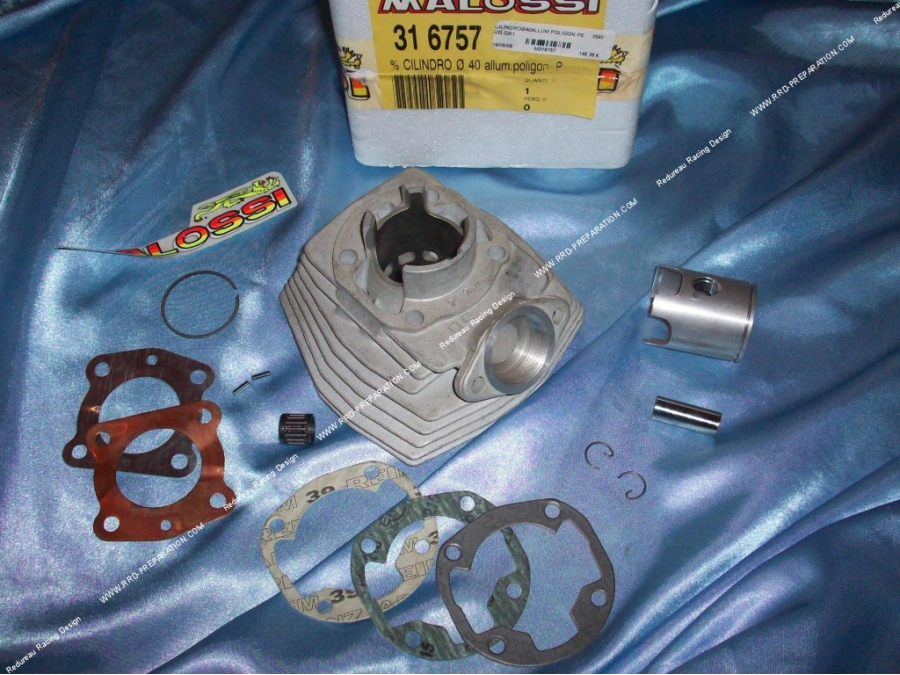 Voici le kit MALOSSI Groupe 1 CDC polygonale air pour Peugeot 103, attention, ce modèle est uniquement réservé a la compétition. Ce kit se monte normalement avec la culasse Ø40m polygonale MALOSSI, cependant cette culasse est désormais introuvable, rien ne vous empêche de poser une culasse MALOSSI d.40mm normale mais esthétiquement la culasse seras plus petite que le cylindre.