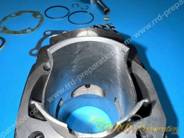 En option nous vous proposons une préparation stage 1, cette préparation est une modification de la lumière d'échappement par augmentation du diagramme et amélioration du conduit, elle augmente les performances du cylindre. Une amélioration du piston et des bas de jupe est aussi comprise dans cette modification. Comptez un petit délai supplémentaire pour cette préparation! Cette préparation sur ce cylindre augmente grandement les performances et la puissance (stock le cylindre est très bridé côté échappement et très mal conçu côté bas de jupe). Étant en fonte et assez difficile a travailler en vue de la base, le prix est évidemment assez élevé.